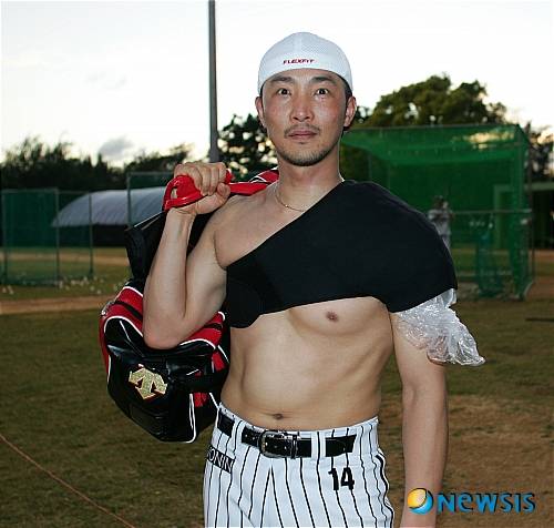 【서울=뉴시스】 박주성 기자 = 31일 오후 사이판 수수페구장에서 전지 훈련중인 LG 트윈스 류택현 선수가 눈을 부릅뜨고 포즈를 취하고 있다.(사진=LG 트윈스 제공)