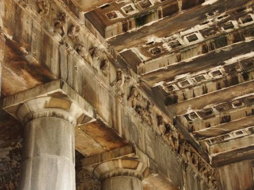 이 신전 역시 제대로 보려면 한 바퀴를 돌아야 한다. 남쪽으로 들어간 우리는 동쪽의 정면에 선다. 주두 위 벽 장식이 상당 부분 훼손되었고, 박공 장식은 거의 보이질 않는다. 그런데 건물 내부 주두 위 벽 쪽을 보니 대리석 장식들이 훨씬 양호한 상태로 남아있다. 아마 이것이 헤라클레스와 테세우스의 업적을 표현한 장식인 것 같다.