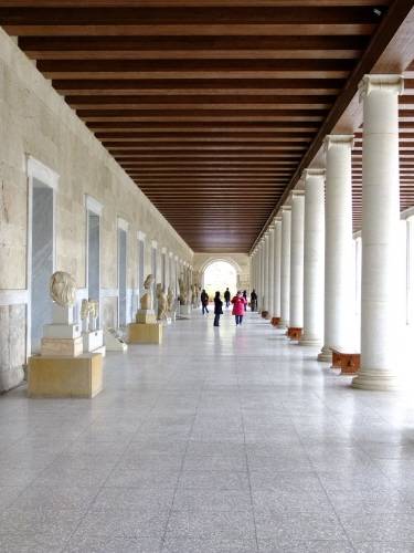 아탈로스 스토아는 과거 상업용 건물이었다. 지금으로 말하면 쇼핑센터에 해당한다. 그러나 지금은 아고라 박물관으로 개조되어 선사시대부터 기원후 10세기까지의 문화재가 전시되고 있다. 안으로 들어가기 전 박물관 밖 회랑에서 우리는 석상과 석주 등 대리석 조각품들을 볼 수 있다. 그 중에도 눈에 띄는 것은 5세기 후반의 이오니아식 주두와 꽃무늬 장식이다. 그리고 황제나 철학자로 보이는 사람의 두상도 있다.