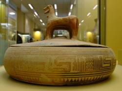 그 옆에는 더 정교하고 완벽한 도자기들이 눈에 띈다. 무늬와 형태, 다양성이 두드러진다. 또 물병이나 술병으로 쓰였을 손잡이 달린 도자기도 보인다. 도자기의 바깥 면에는 말과 검투사가 그려져 있다. 그리고 더 재미있는 것은 물건을 담아놓는 용도나 반짓고리로 쓰였을 것 같은 도자기다. 국내에서도 흔히 볼 수 있는 ㄹ자 문양이 특이하고, 손잡이는 세 마리 말로 이루어져 있다.
