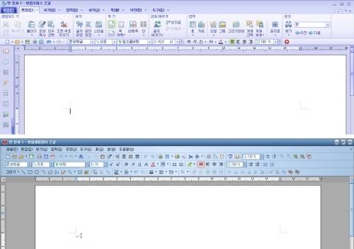 이전 버전 UI와 비교한글2010은 열림 상자를 사용해 이전 버전 도구 상자에 비해 보다 빠르게 메뉴에 접근할 수 있다.