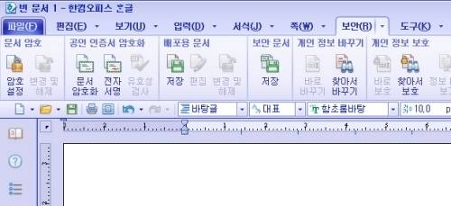 개인정보 암호화를 통한 보안 강화개인정보 유출 등을 방지하기 위하여 문서의 내용 중 보안이 필요한 글자를 암호화할 수 있는 개인정보 감추기 기능을 제공한다. 주민번호, 계좌번호, 메일 주소 등 중요한 개인 정보를 문서에서 일괄적으로 암호화할 수 있는 개인정보 검색기능을 지원한다. 암호기능과 되돌리기 기능을 사용하면 개인정보보호 기능을 쉽게 해제할 수 있다.