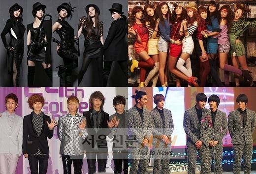 사진 = 카라, 소녀시대, 2PM, 샤이니(위) , 티아라 지연, 조권, 유이, 윤아, 택연, 대성(가운데), 브아걸, 카라(아래)