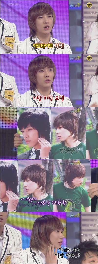 이준은 "가발 피팅모델을 했다"고 전했다. 이에 MC들은 이준의 가발모델 당시 사진을 깜짝 공개했다. "지금과 똑같다"는 출연자들의 말에 뒤에 앉아있던 비스트 윤두준은 이준의 머리를 흔들어보기도 했다.