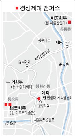 1924년부터 1945년까지 식민지의 유일한 대학으로 존재했던 경성제대는 3개의 캠퍼스를 거느렸다. 의학부가 현 서울대 의대 자리인 종로구 연건동에, 법문학부가 지금의 마로니에공원 자리인 종로구 동숭동에 자리했다. 이공학부는 현 서울산업대 캠퍼스가 있는 노원구 공릉동에 자리잡았다.