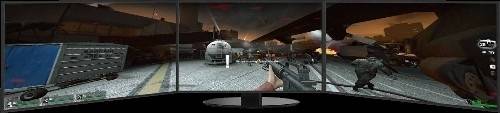 3개 모니터를 연결했을 때의 화면. 5,760×1,080 해상도를 지닌다. 모니터 1개를 연결했을 때보다 단순히 크기만 늘린 것이 아니라 더 많은 것을 볼 수 있다. |
