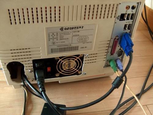 2. 케이블을 연결한 모습. 전원 케이블이 나오는 통로가 예쁘지 않아 아쉽다.