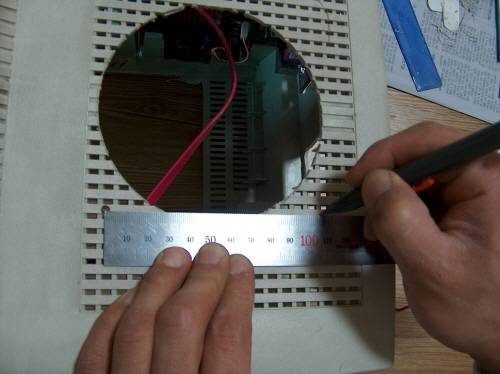 4. 120mm 홀소로 큰 구멍을 냈다. 구멍을 낸 다음에 원과 맞물리게 밑그림을 그린다. 냉각팬을 고정시킬 나사 구멍을 내야 하기 때문이다.