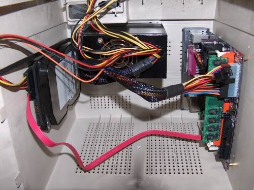 7. 메인보드에 메모리를 끼우고 하드디스크와 파워서플라이를 각각 연결한다.