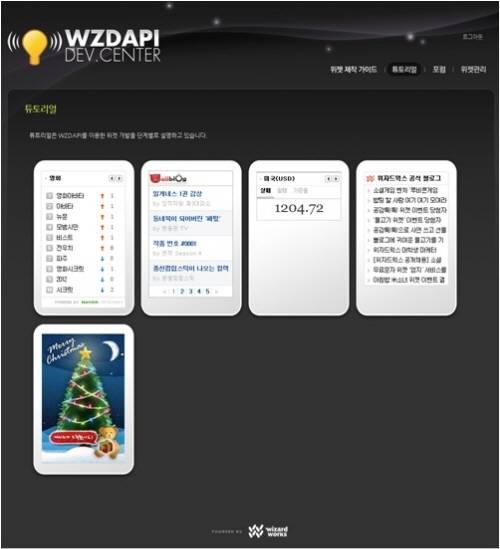 이를 위해 WZDAPI 개발자센터에서는 개인 개발자는 물론 기업에서도 누구나 편리하게 위젯을 만들 수 있도록 상세한 개발환경 문서와 튜토리얼, 포럼 등 개발자 편의를 위한 각종 기능들을 무료로 제공하고 있다.