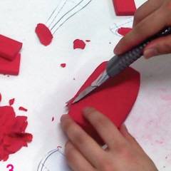 1) 칼라믹스, 도면, 드라이기 등을 준비한다.2) 드라이기로 적당히 가열 후 주물러 도면에 대보면서 원하는 형태를 대강 만든다.3) 손으로 문지르거나 칼로 잘라내어 도면과 사이즈를 확인하며 마무리한다.4) 직접 손으로 잡아보면서 크기와 형태를 가늠해본다.