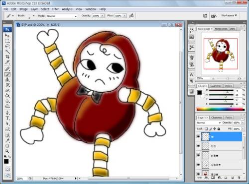 19. 블랜드 모드를 다큰(Darken)으로 설정해 약간 어둡게 설정하면 콩군 캐릭터 완성이다.