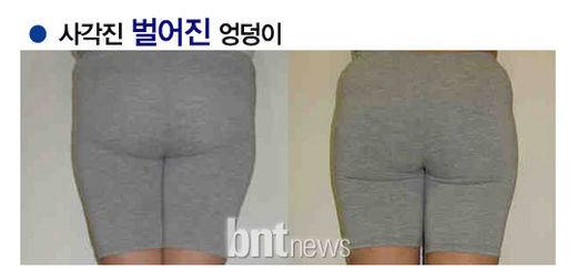 벌어진 엉덩이는 입체감이 없이 사각으로 넓어진 일명 '아줌마 엉덩이'다. 출산 직후 여성이나 장시간 앉아서 근무하는 직장 여성에게서 볼 수 있다.