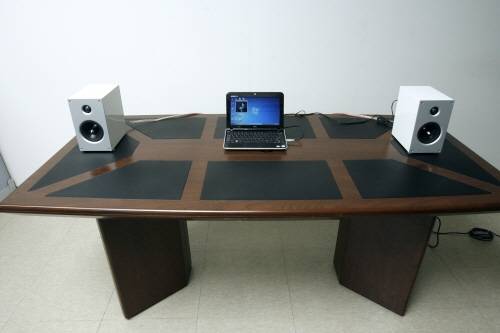 빙 둘러 앉았을 때 PC가 있는 가운데 부분이 양쪽 스피커 소리가 어울려 가장 잘 들린다. |