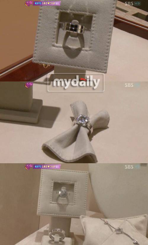 22일 밤 방송된 SBS '한밤의 TV연예'는 두 사람이 예물을 맞춘 쥬얼리숍에 찾아가 결혼반지를 살펴봤다.