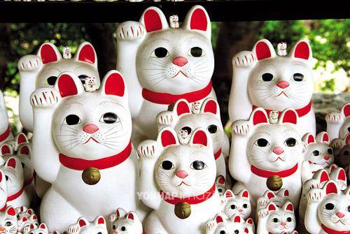 지금도 고우토쿠지에는 앞발을 들고 사람들을 부르는 하얀 고양이 상이 모셔져 있어, 관광객들에게 즐거움을 전하고 있다. 고우토쿠지 가는 길의 간판과 담벼락, 전봇대에 그려진 고양이 그림도 흥미롭다.