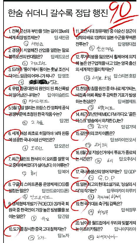 시험 감독관 앞의 수험생처럼 작은 목소리로 "새만금이 맞냐"며 여러 번 확인했다. 하지만 초반과 달리 뒤로 갈수록 정답율이 높았다. 무라카미 하루키를 적으면서는 그의 팬이라며 반가워 했다.