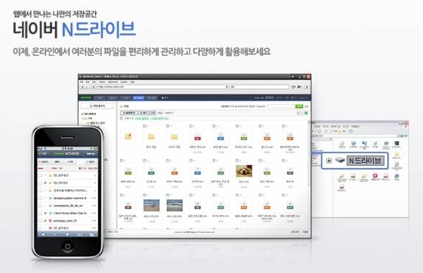 포털 네이버는 언제 어디서나 이용할 수 있는 개인 웹저장공간인 N 드라이브(ndrive.naver.com)를 2009년 7월부터 무료로 서비스하고 있다. 네이버 N드라이브는 총 5Gb까지 제공되며 네이버 아이디만 있다면 누구나 사용 가능하다. 자주 사용하는 문서, 사진, 동영상 등 각종 파일들을 내 N드라이브에 저장해 놓으면 집, 회사, PC방 등 어떤 컴퓨터 환경에서도 언제나 파일을 올릴 수 있고, 필요한 순간에 사용할 수 있다. 윈도 탐색기와 유사한 기능의 'N드라이브 탐색기'를 설치하면 내 컴퓨터에 N드라이브(N:)가 생성되고, 이를 컴퓨터 저장공간과 유사하게 사용할 수 있다.