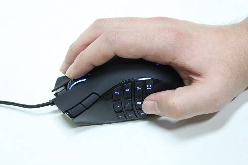 나가는 한눈에 봐도 특징을 알 수 있다. 버튼이 17개나 달려 있다. 일반 마우스에서 쉽게 볼 수 있는 좌우 클릭, 앞뒤 이동, 휠 버튼을 말고도 엄지손가락 부분에 12개 버튼을 더 달았다. 레이저는 이 부분을 썸그리드(Thumb Grid)라고 부른다.