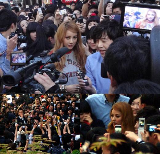 이효리는 지난 9일 KBS '연예가중계' 촬영을 위해 리포터 김태진과 함께 홍대앞을 방문한 것으로 알려졌다. 홍대 거리에서 이루어진 이효리의 게릴라 데이트는 소식을 듣고 몰려든 수많은 인파로 인해 촬영의 어려움을 겪었단 후문이다.