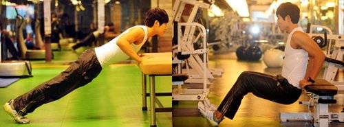 팔뚝 뒤쪽, 삼두근을 키우는 운동이다. 고정된 의자 앞에 서서 팔을 어깨너비만큼 벌린 상태에서 뒤로 짚는다. 다리로 몸을 지탱하고, 팔을 90도까지 굽힌 뒤 다시 제자리로 돌아온다. 팔을 내릴 때 엉덩이가 의자에서 멀리 떨어지지 않도록 주의한다. 20회씩, 4번 한다.