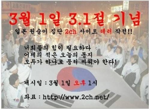 3.1절에 2채널 공격에 함께 하자는 포스터. |