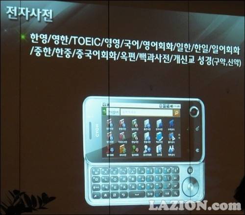LG텔레콤이나 LG전자나 아직 자체 앱스토어가 준비되어 있지 않은 부분을 의식한 듯, 기본 탑재된 앱스가 꽤 많다. 먼저 내세우고 있는 부분은 다양한 사전. 어떻게 생각하면 쿼티 키패드와 사전이란 매우 자연스러운 조합일 것이다. 별도로 유료 사전을 사지 않아도 웬만한 사전 데이터가 기본으로 들어가 있다는 것은 분명한 장점이 될 것이다.