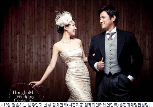 "사실은 19살 차이에요"13일 오후 결혼식을 올리는 탤런트 변우민이 신부 김효진씨와의 나이 차이에 대해 고백했다.
