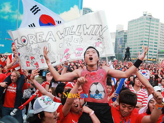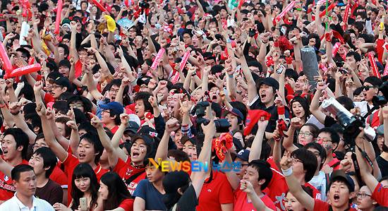 6월 23일 오전 3시30분(이하 한국시간) 남아공 더반에 위치한 모세스 마비다 스타디움에서 펼쳐진 2010 남아공월드컵 조별리그 B조 마지막 3차전 대한민국:나이지리아 경기 중계를 보기 위해 경찰추정 11만명이 넘는 시민들이 서울시청, 상암동 월드컵 경기장, 강남 영동대로 코엑스 등 거리로 쏟아졌다.