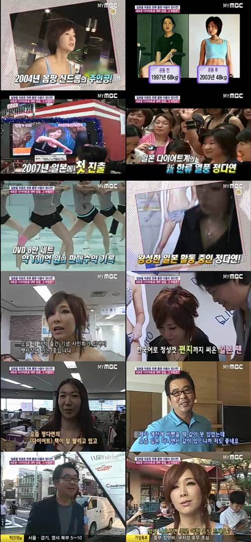 과거 비만 주부에서 몸짱 아줌마로 재탄생 후 한국에서 다이어트 비법을 전수하며 유명해진 정다연은 2007년, 일본에까지 진출해 그녀만의 운동법이 담긴 책과 DVD를 판매, 엄청난 수익을 올렸다.