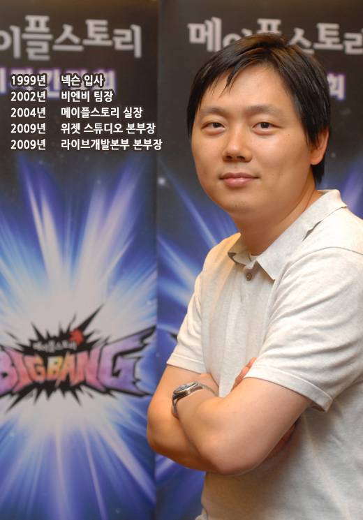 "2004년부터 '메이플'을 담당했지요. 개인적으로 제가 이 자리에 설 수 있게 된 것도 '메이플' 때문입니다." 채 본부장은 오랫동안 '메이플' 개발실장을 역임해 누구보다도 '메이플'을 잘아는 사람이다. 현재는 오한별 개발실장이 '메이플' 개발을 총괄하고 있지만 여전히 채 본부장의 역할은 크다. 이번 빅뱅 업데이트도 채 본부장의 조언이 없었다면 불가능했을 수도 있다.