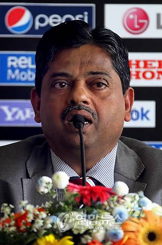 epa02270907 ICC Cricket World Cup 2011 Tournament Director Ratnakar Shetty speaks during a press conference at the P.Sarawanamuththu Cricket Stadium in Colombo, Sri Lanka, 02 August 2010. The 2011 Cricket World Cup, the tenth in the series, is scheduled to take place in the sub-continent with India, Sri Lanka and Bangladesh hosting several matches. The first match is to be played in Dhaka, Bangladesh on 19 February 2011. The ICC Cricket World Cup final will be in Mumbai on 02 April 2011. EPA/M.A.PUSHPA KUMARA < 뉴스의 새 시대, 연합뉴스 Live >< 모바일 애플리케이션 >< 포토 매거진 >< 저작권자(c)연합뉴스. 무단전재-재배포금지. >