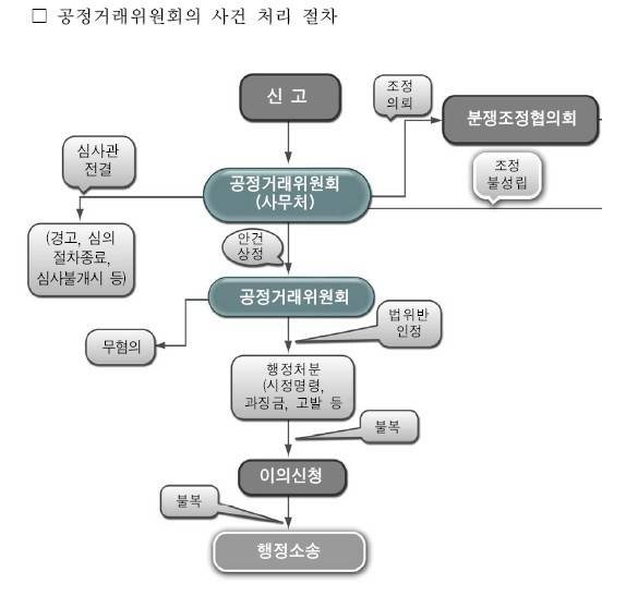 아울러 가맹본부와 가맹점사업자 사이에 분쟁을 공정거래조정원에 조정신청하거나 공정위에 신고했을 경우, 사건이 처리되는 순서도 소개했다.