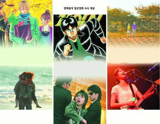 [서울신문] 국내 웹툰 '이끼'가 영화로 만들어져 흥행 몰이를 하고 있는 가운데 만화를 원작으로 한 일본 영화가 거푸 국내 극장가에 등장할 예정이라 눈길을 끈다. 5일 '내 첫사랑을 너에게 바친다'를 시작으로 19일 '카이지'가 스크린에 걸리며, '소라닌'이 그 뒤를 이어 26일 선보인다. 일본에서 만화와 영화 모두 인기를 끌었던 작품들이다. 국내에 출판된 원작을 미리 본 뒤 영화를 관람하거나, 영화를 본 뒤 원작을 보며 만화 속 상상력이 어떻게 영상으로 옮겨졌는지 비교하는 것도 무더운 여름을 이기는 재미있는 영화 감상법일 듯.