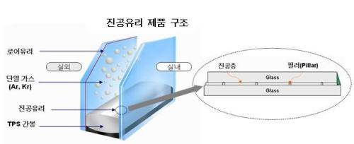 LG하우시스(대표 한명호)는 현존 최고의 단열성능을 지닌 차세대 유리제품인 '진공유리' < 구조도 > 를 국내 처음으로 개발ㆍ출시했다고 15일 밝혔다.