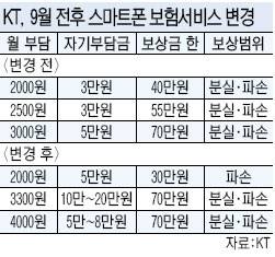 현재 2000∼3000원인 쇼폰케어 월 납부액은 다음달부터 2000∼4000원으로 1000원 정도씩 오른다. 월 2000원을 내는 보험상품은 보상 범위를 제품 파손으로만 제한한다. 기존 3만∼5만원이었던 자기부담금을 5만원에서 최고 20만원까지 높인 점도 눈길을 끈다.