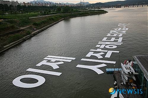 KT '올레' 광고, '한강에 띄운 최대 광고문구'