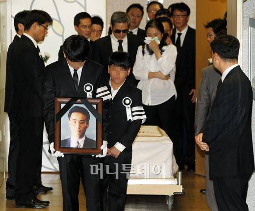 이날 오전 삼성서울병원 장례식장에서 진행된 발인은 11시30분이 넘어서야 시작됐다. 화장장 예약이 밀려서 발인이 늦어졌다.