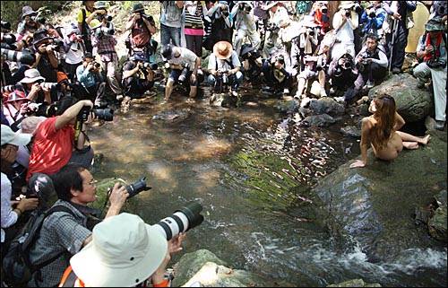 [사진] 세미누드 촬영대회에 몰려든 카메라