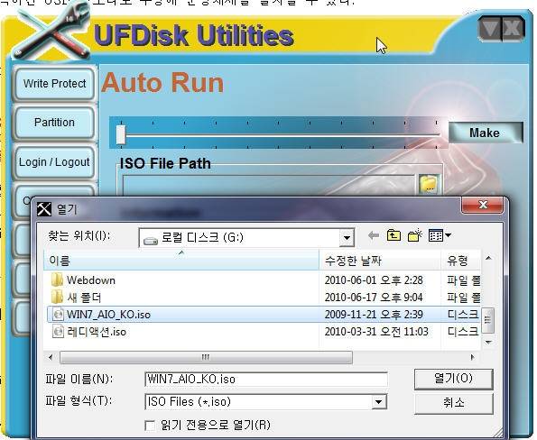 ③ ISO file의 [...]을 누르고 USB 메모리에 넣을 ISO 파일을 고른다.