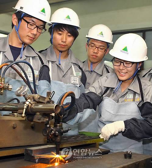 현대중공업은 지난 8월 입사한 대졸 공채 신입사원 77명을 대상으로 지난달 31일부터 오는 6일까지 회사 기술교육원에서 용접과 철판 절단 등을 직접 배우는 장인혼 교육을 실시하고 있다고 1일 밝혔다.