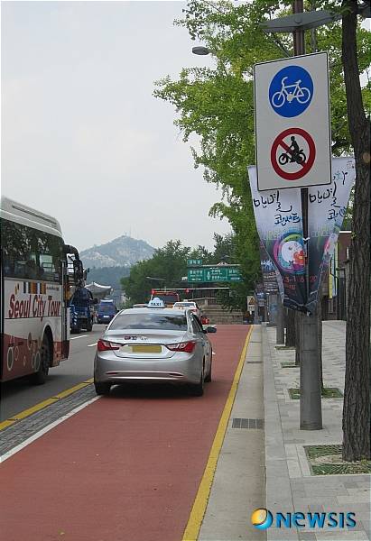 종로구 안국역~경복궁역 자전거 전용도로 구간. 이 곳은 주인을 잃은 지 오래다. 주인 없는 자전거 도로에는 오토바이가 점령하고, 가끔 불법 택시 승강장으로 쓰이고 있다.