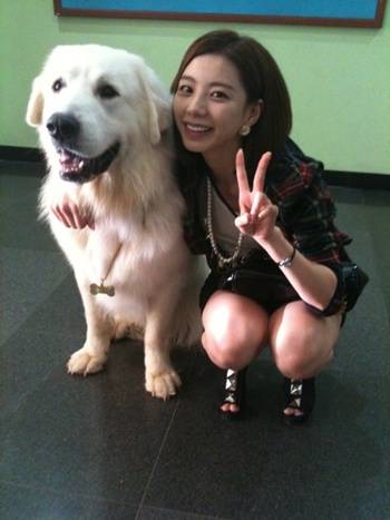 박수진 '여친구' 이승기 애견 뚱자와 찰칵 '몸크기 맞먹네'