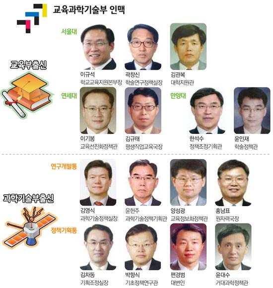 '진주 마피아' '서울사대파' 등 과거 교육부를 장악했던 파벌이 사실상 없어졌고 특정 인물을 중심으로 한 과기부의 '이너서클'도 사라졌다. 이는 현정부 들어 교과부 장관은 물론 차관도 외부 출신이 기용된 것과 무관하지 않다.