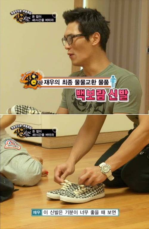 김재우는 백보람의 신발을 들고 동료 연예인을 찾아 다니며 물물교환을 시도했다. 교환가치가 서로 맞아야 했지만 김재우에게 백보람의 신발은 단순히 신발 이상이었다. 결국 MC 지석진은 백보람의 신발을 보며 "이제 그만 잊어라"고 농담을 던졌다.