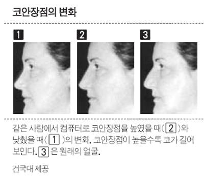 예를 들어 한국인의 코는 너비와 길이에 거의 차이가 없다. 코의 너비는 왼쪽 콧구멍 가장자리에서 오른쪽 콧구멍 가장자리까지, 코의 길이는 코끝점부터 코안장점(양쪽 눈 사이 안으로 움푹 들어간 지점)까지다. 정확히 따지면 한국인의 코는 평균적으로 길이가 너비보다 2∼3mm 정도 더 길다. 서양인은 이 차이가 훨씬 크다. 한국인의 코가 서양인에 비해 짧고 납작하게 보이는 이유다.