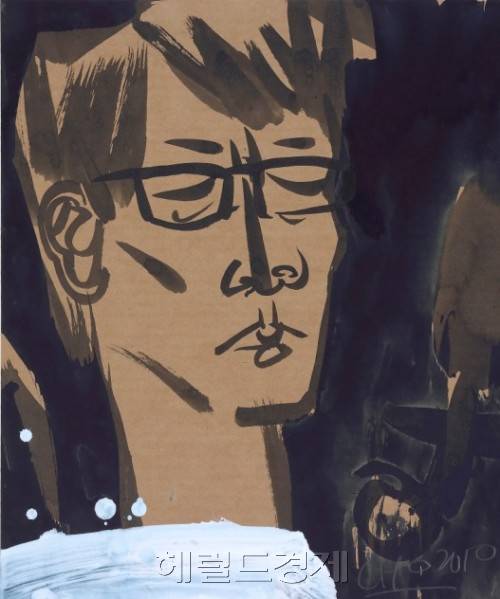 서울 근교의 작업실에 틀어박혀 전통에 뿌리를 두되 시대와 호흡할 수 있는 수묵작업에 몰두해온 조순호의 자화상. 질끈 감은 눈 너머로 '현대의 선비'다운 면모가 읽혀진다. |