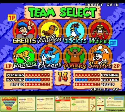 예컨대 장거리 타자는 뚱뚱보, 교타자는 호리호리한 체구, 주력이 좋은 선수는 키가 작은 선수 이런 식이다. 이 게임의 묘미는 이른바 영웅 유닛 개념인 마타자, 마투수를 고를 수 있다는 점. 당시까지 오락실 야구 게임은 정해진 선수로만 하거나 기껏해야 대타나 구원투수 교체만 가능했다.
