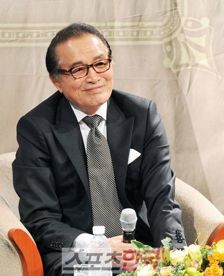 짙은 남색 정장에 하얀 와이셔츠, 작은 물방울이 빼곡한 넥타이로 매치한 뒤 왼쪽 가슴에 하얀 손수건으로 포인트를 줬다. 깔끔하다. 1960~70년대 뭇 여성들의 가슴을 설레게 하던 미남 스타의 풍모가 여전하다.