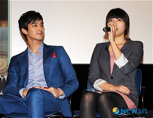 【서울=뉴시스】조수정 기자 = 영화 조금만 더 가까이 시사회가 열린 18일 오후 서울 CGV왕십리점에서 배우 염보라가 취재진의 질문에 답하고 있다. 왼쪽은 상대배우 오창석.